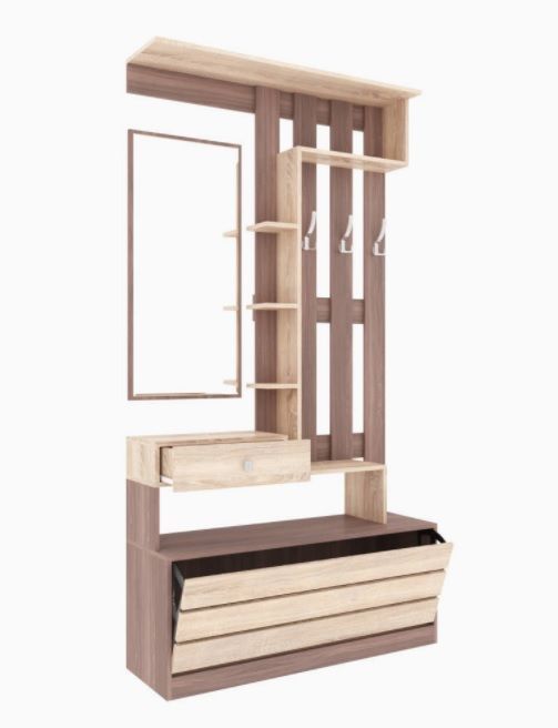 Если пространство Вашей прихожей не позволяет расположить много мебели, советуем обратить внимание на секцию из коллекции Ямайка. Модуль уникален по своей функциональности и содержит нишу для обуви с откидной дверцей, выдвижной ящик для мелочей, открытую вешалку с 3-мя крючками, полку-антресоль, набор открытых полок и зеркало. Ширина в 110 см позволит Вам расположить секцию даже в малогабаритной прихожей. Особенности компактный размер трендовый декор с текстурой дерева функциональное наполнение
